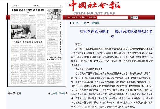近年来,广西壮族自治区民政厅深入贯彻落实国务院及自治区关于提升行政执法质量三年行动计划的决策部署,持续强化民政领域行政执法监督,着力提升全区民政系统执法规范化水平。通过组织开展年度行政执法案卷评查工作,自治区民政厅坚持问题导向、标本兼治,用“以评促改、以查促优”推动工作落地见效,为民政事业高质量发展筑牢坚实法治根基。